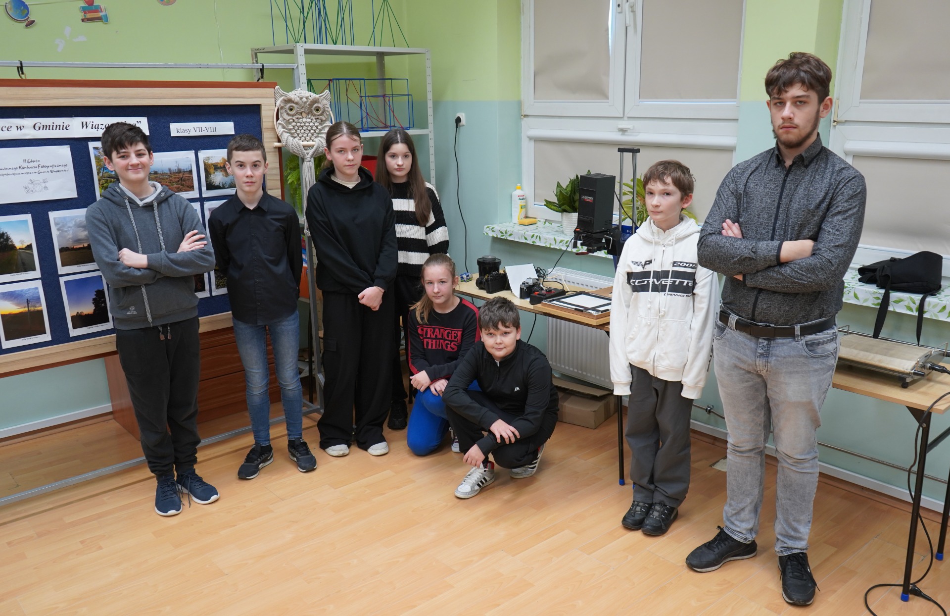 Podsumowanie gminnego konkursu fotograficznego „Najpiękniejsze miejsca w Gminie Wiązownica” rozpoczęło się od kilku słów powitania wygłoszonych przez Panią Dyrektor Joannę Czyż. Wręczono dyplomy i nagrody laureatom oraz wyróżnionym uczestnikom. Gratulacje laureatom złożyła obecna na wernisażu Pani Anna Lampart – inspektor do spraw oświaty gminy Wiązownica. Konkurs objęty był patronatem Pana Krzysztofa Strenta Wójta Gminy Wiązownica. Po części oficjalnej uczniowie wzięli udział w mini warsztatach fotograficznych, podczas których mieli okazję poznać tajniki pracy w ciemni fotografii analogowej.