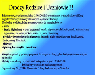 Zbiórkę najpotrzebniejszych rzeczy dla naszych sąsiadów...